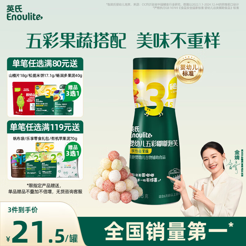 英氏(Engnice)婴幼儿手指泡芙 婴儿宝宝零食五彩嘟嘟泡芙条缤纷蔬果味罐装38g