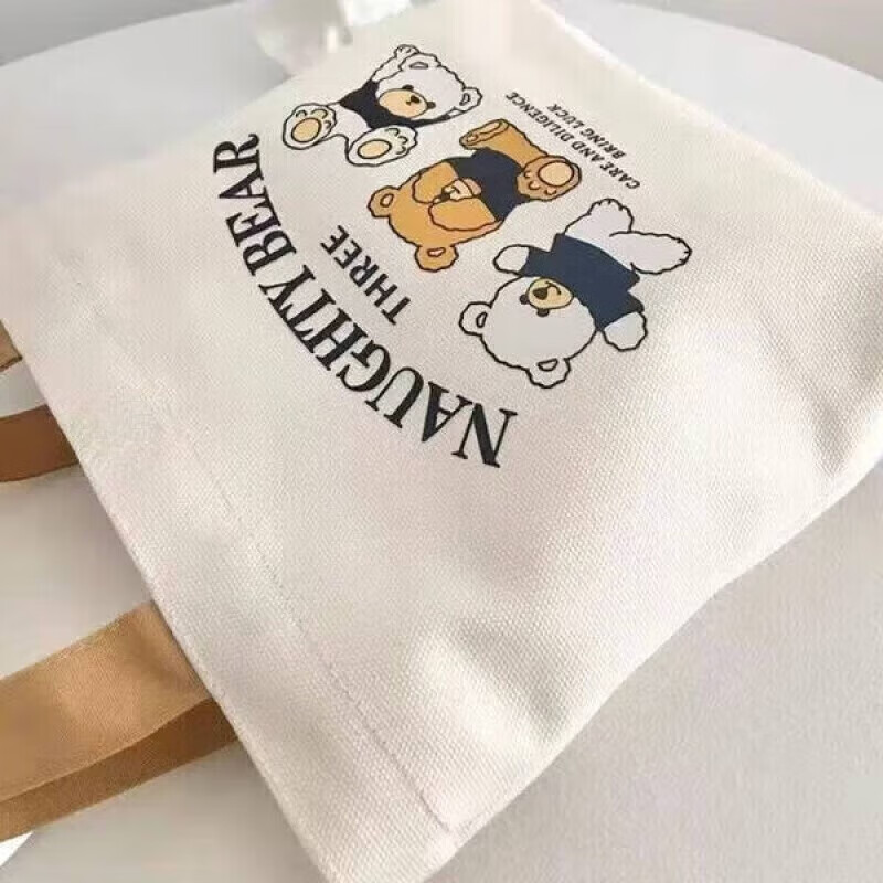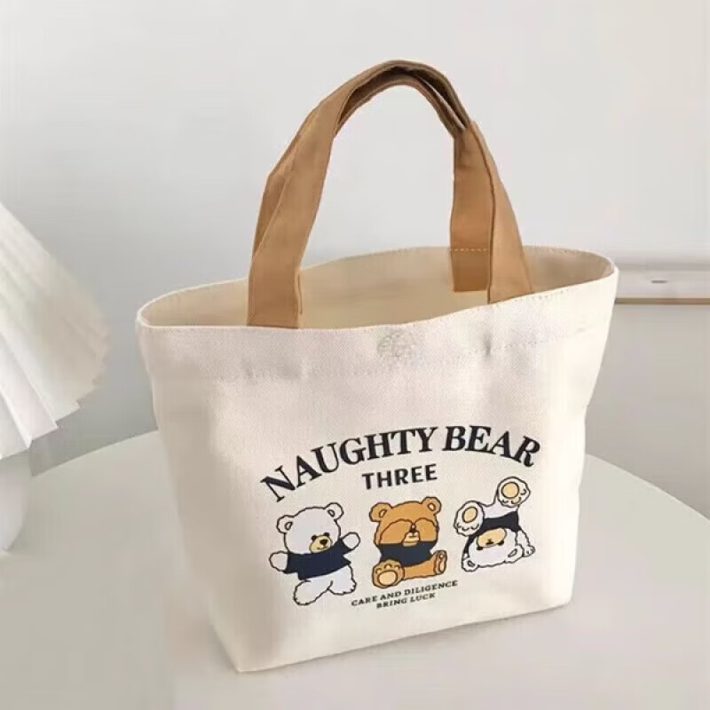 【出行】旅行手提袋小巧帆布包学生简约手提包上班族帆布袋 小熊帆布袋3 长27*高22cm