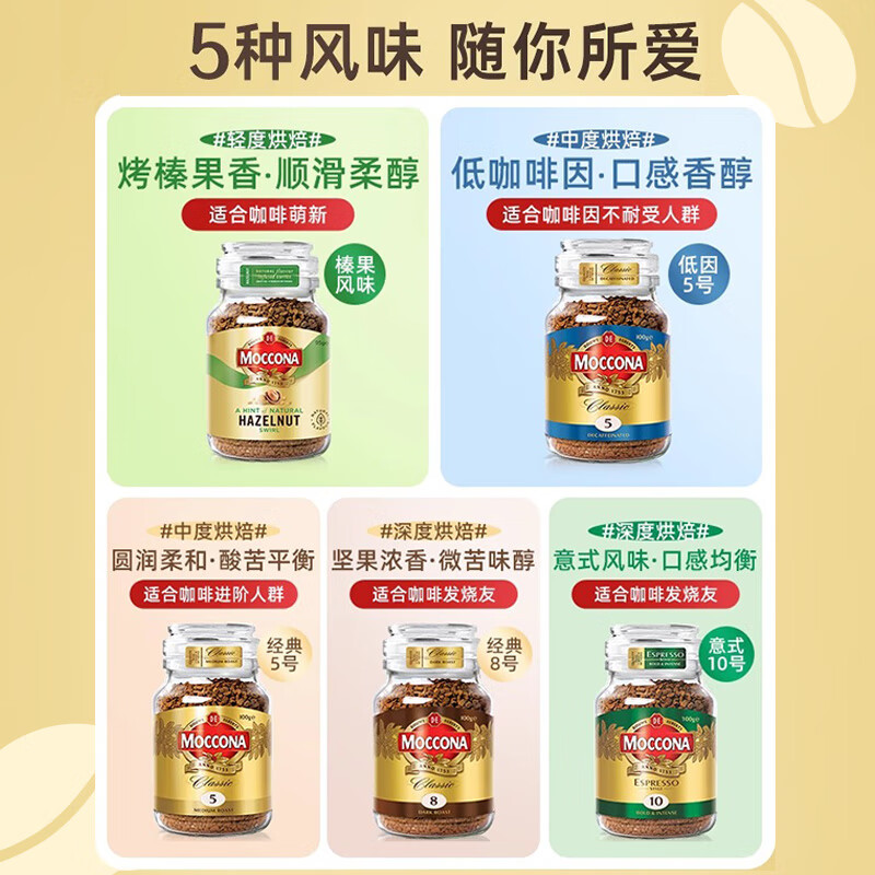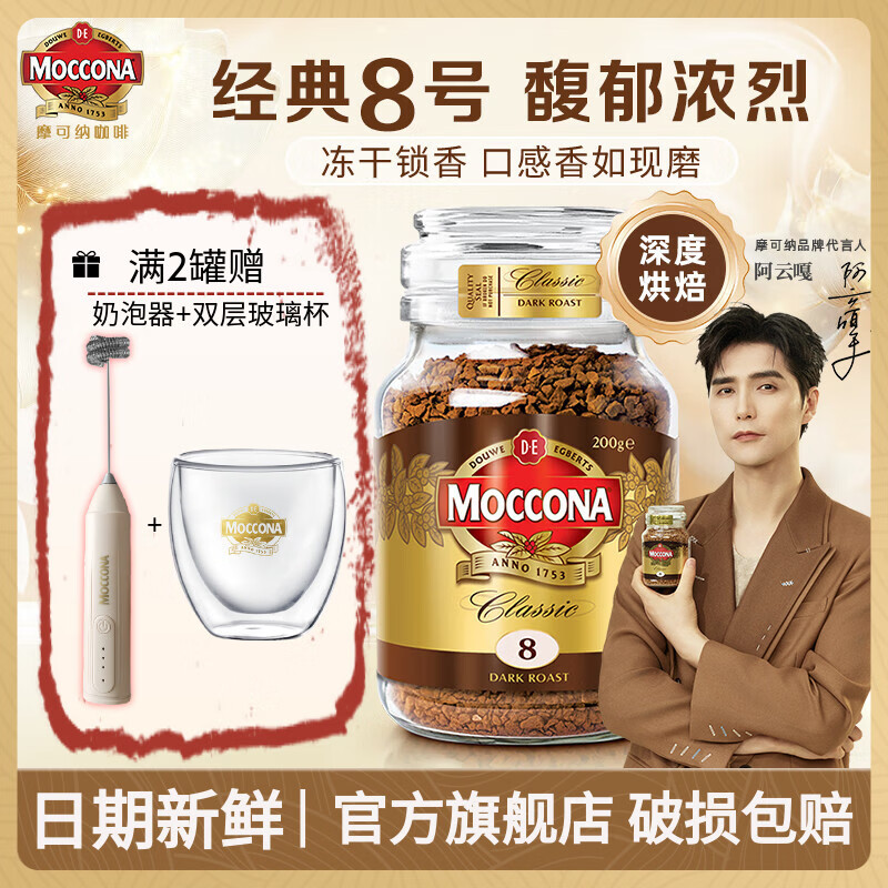 摩可纳(Moccona)经典进口冻干速溶黑咖啡罐装 摩卡拿铁健身 400次咖啡 【爆款现货】经典8号 深烘 200g