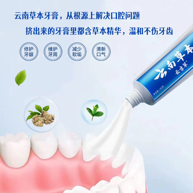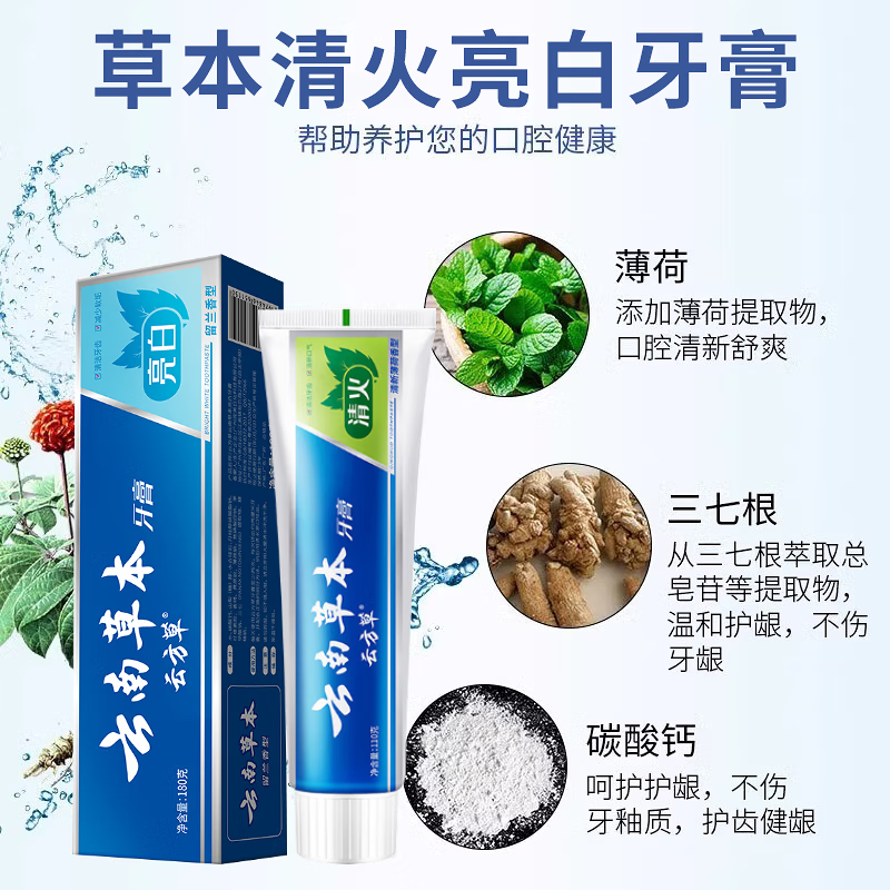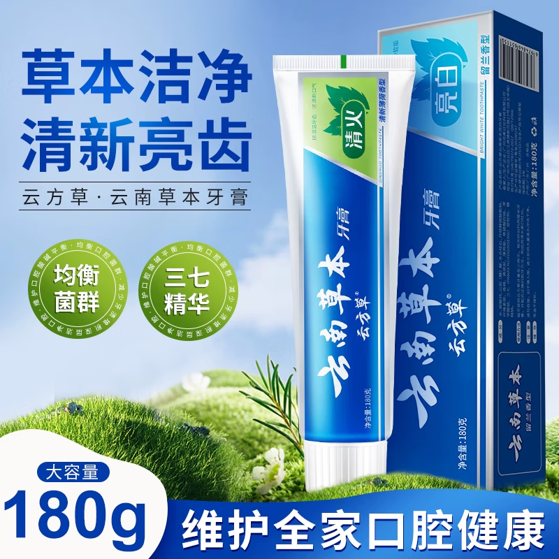 云南草本薄荷清爽护龈清新口气牙膏180g/支 云南草本牙膏180g/支 2支