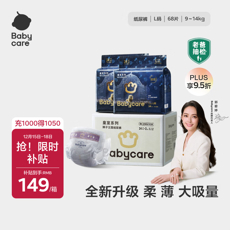 babycare皇室狮子王国弱酸纸尿裤箱装L68片(9-14kg)婴儿尿不湿透气亲肤