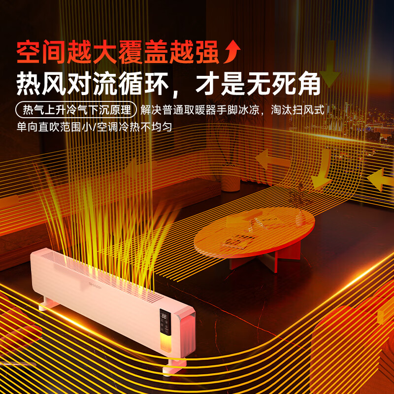 夏普(SHARP)暖洋洋取暖器石墨烯踢脚线电暖器家用速热大面积移动地暖浴室电暖气氛围灯节能暖风机HX-BR213D-C