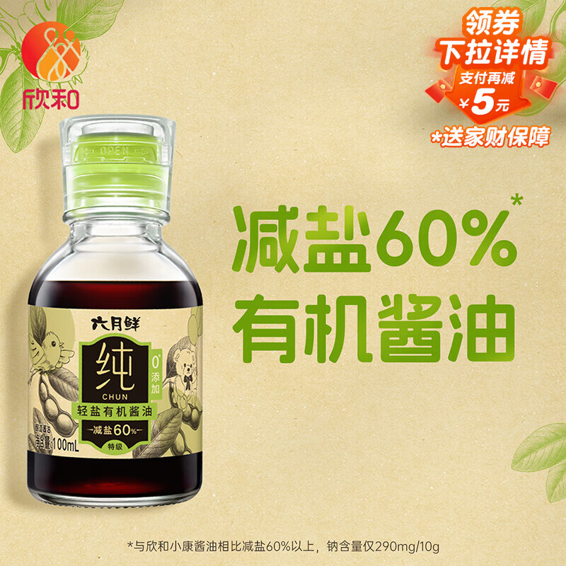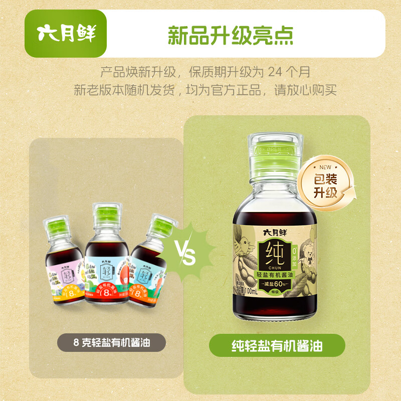 六月鲜纯系列轻盐有机酱油100ml【特级酱油】拌面薄盐生抽炒菜 欣和出品