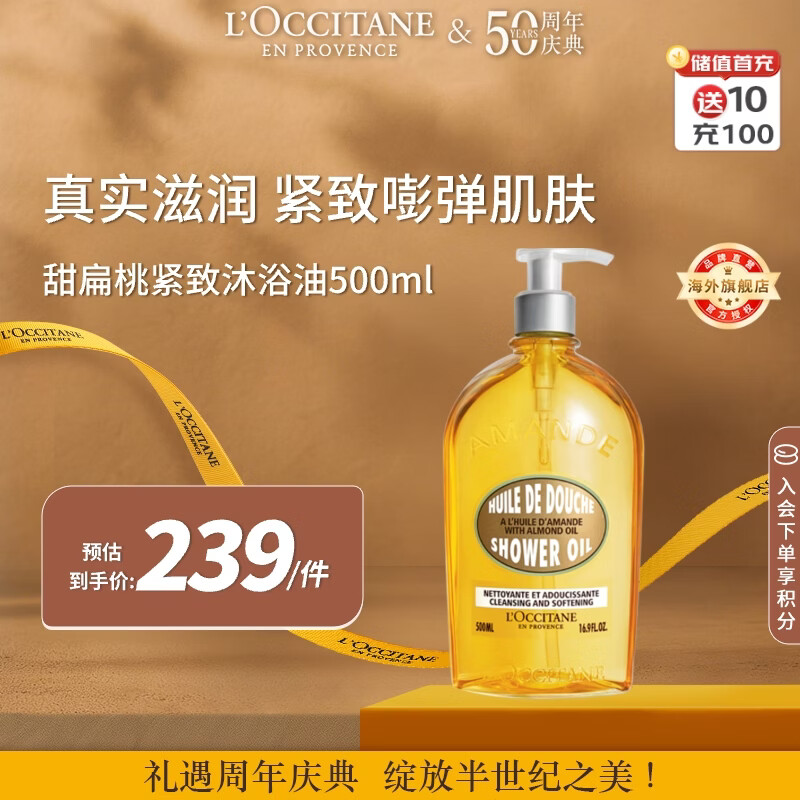 欧舒丹甜扁桃沐浴油500ml紧致保湿养肤级清洁不紧绷法国进口男女士礼物
