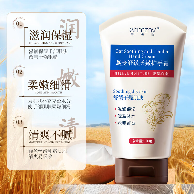 ehmznv燕麦舒缓柔嫩护手霜凡士林保湿补水改善干裂粗糙秋冬季手部护理 燕麦舒缓柔嫩护手霜 100g*2支