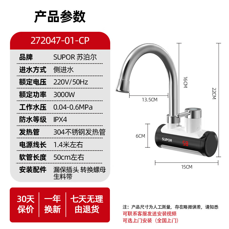 苏泊尔( SUPOR )电热水头 侧进水即热式速热快速加热过水热厨房卫用阳台电热水器272047-01-CP侧进水