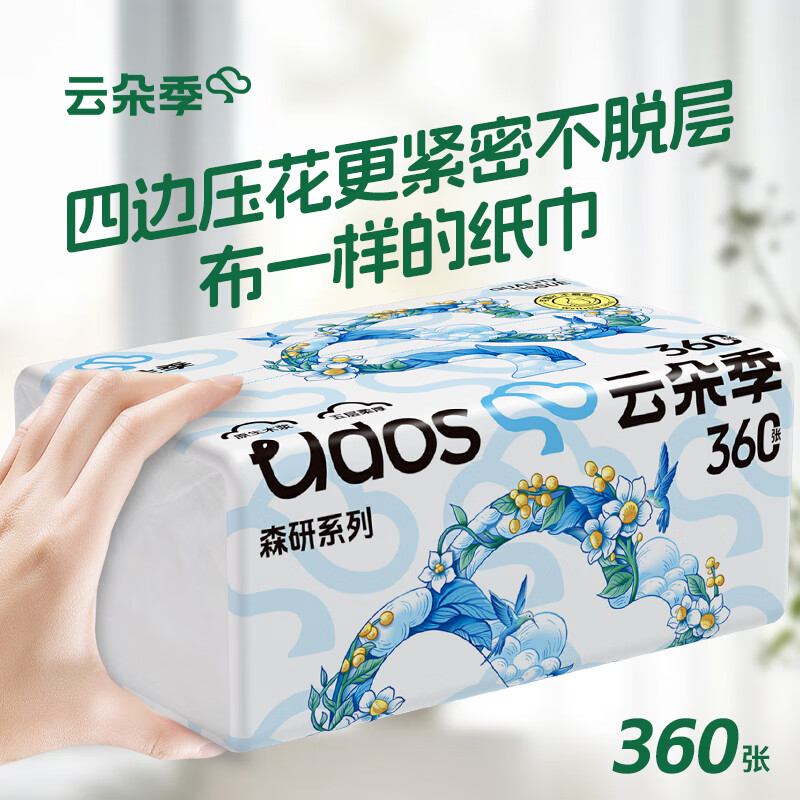 云朵季加厚抽纸大尺寸纸巾医护级卫生纸大包家用餐巾纸优等品纸抽面巾纸 5层 360张*24包