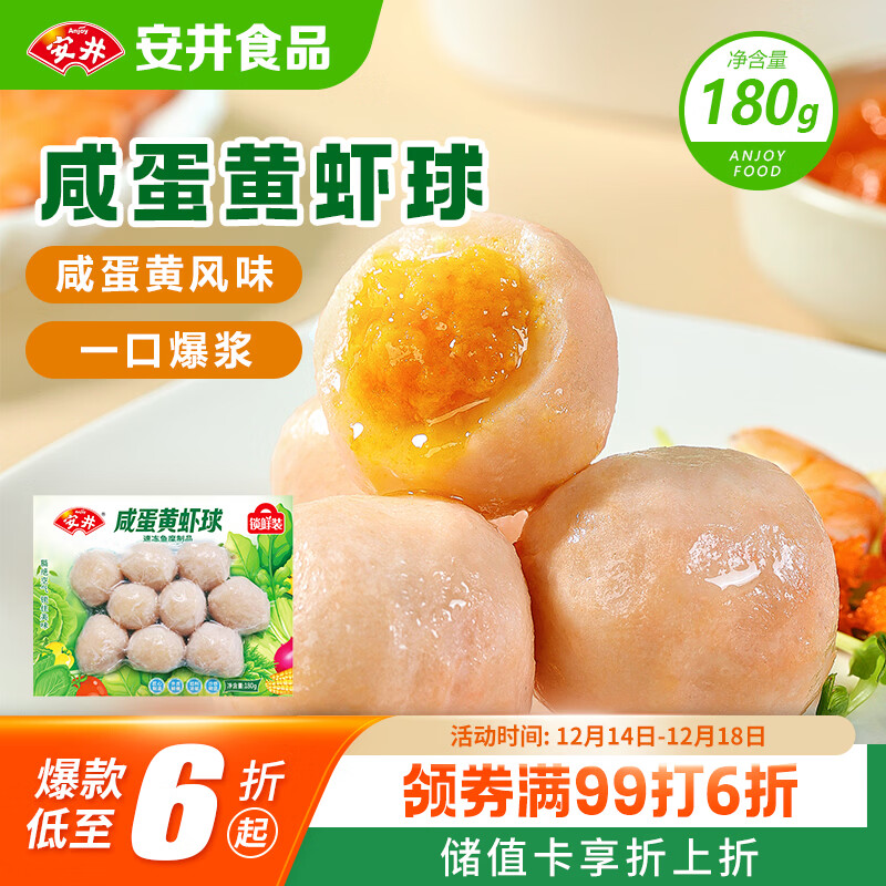 安井 咸蛋黄虾球 180g/包 火锅关东煮麻辣烫食材 速食熟食方便菜