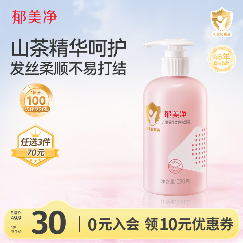 郁美净儿童洗发水290g保湿柔顺山茶油宝宝洗发露青少年洗发水3-6-12岁