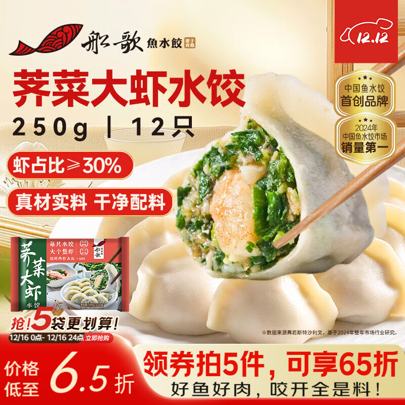船歌鱼水饺荠菜虾皇水饺250g/12只 健康早餐夜宵 海鲜手工速冻饺子 生鲜速食