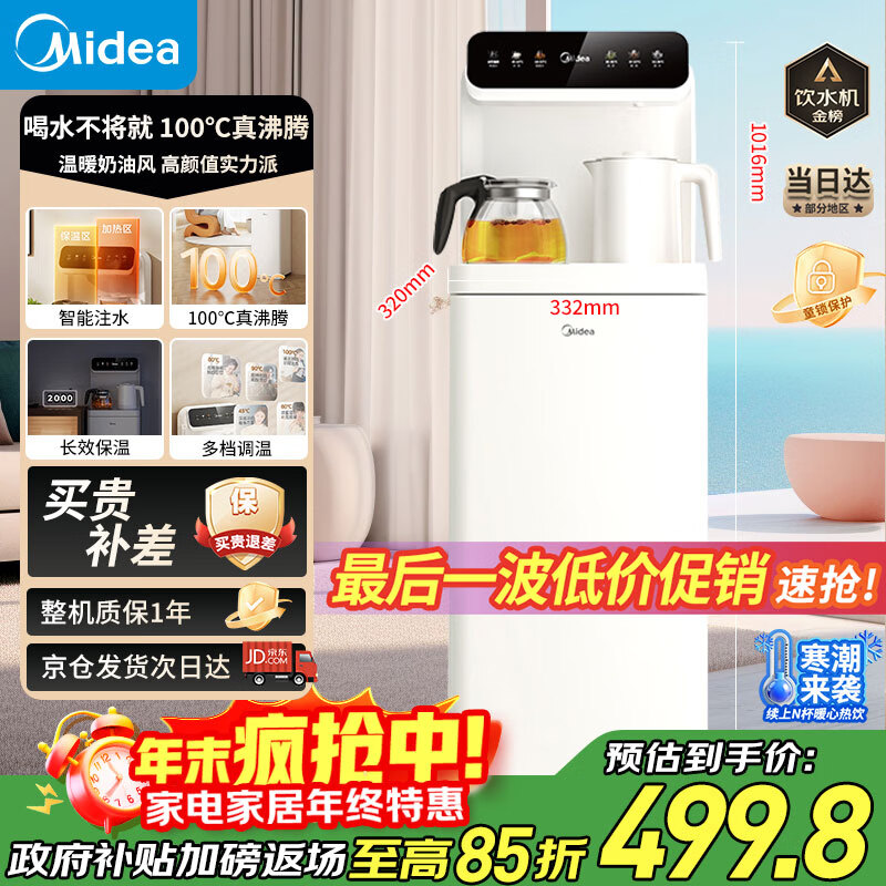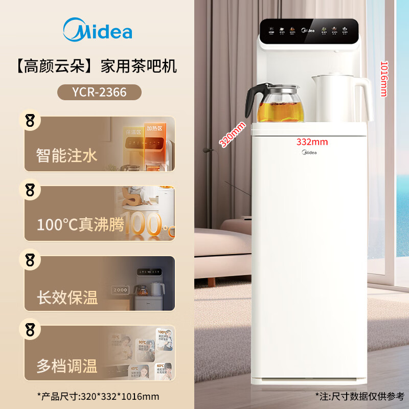 美的(Midea)茶吧机饮水机家用烧水壶电热水壶客厅立式桶装下置国家补贴白泽系列茶吧柜电水壶养生壶YCR-2366