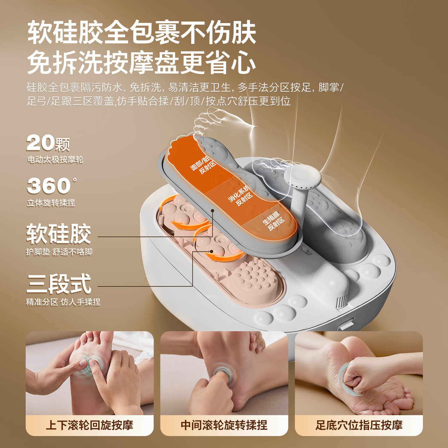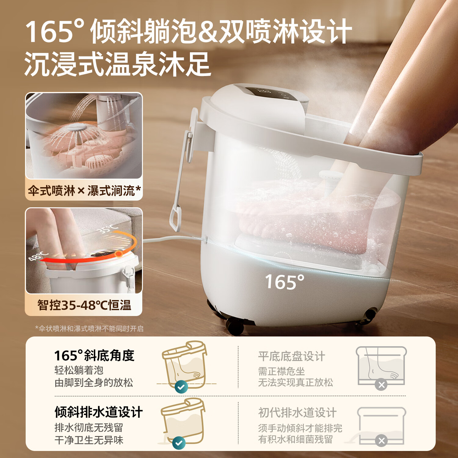 飞利浦(PHILIPS)泡脚桶躺泡免洗电动按摩足浴盆UV杀菌小白桶智能恒温加热软胶泡脚盆3222F 圣诞节礼物实用生日礼物