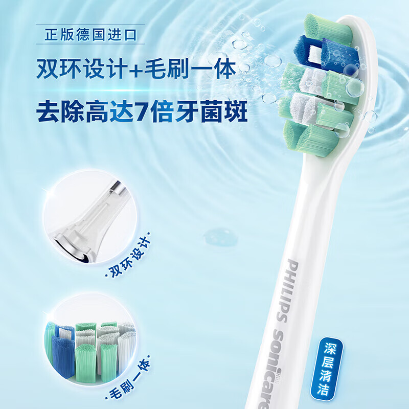 飞利浦(PHILIPS)电动牙刷头 洁净型牙刷头 7倍去除牙菌斑 3支装 HX9023 官方原装适配钻石3/7/9系列刷柄