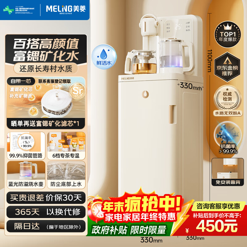 美菱富锶矿化防溢茶吧机家用多功能办公室立式饮水机茶吧柜智能自动上水烧水壶电热水壶多段控温MC-N08