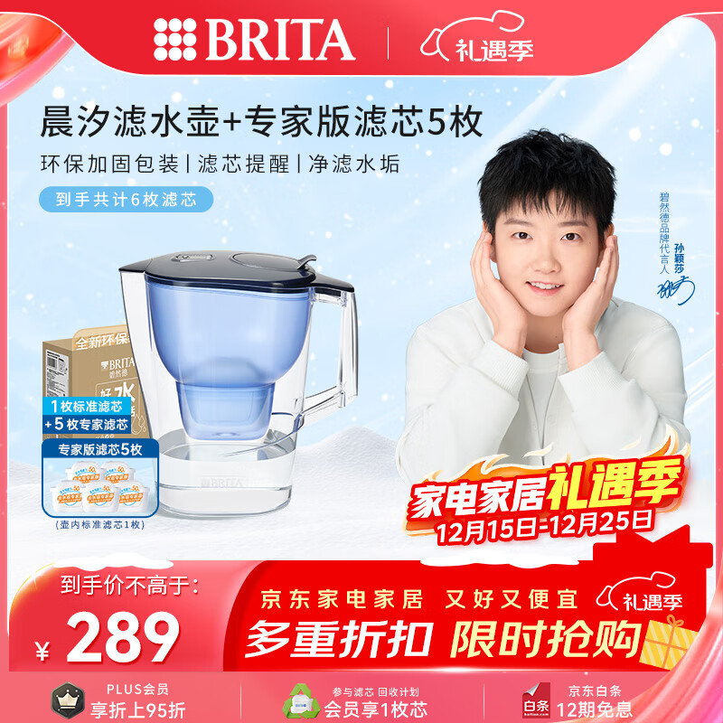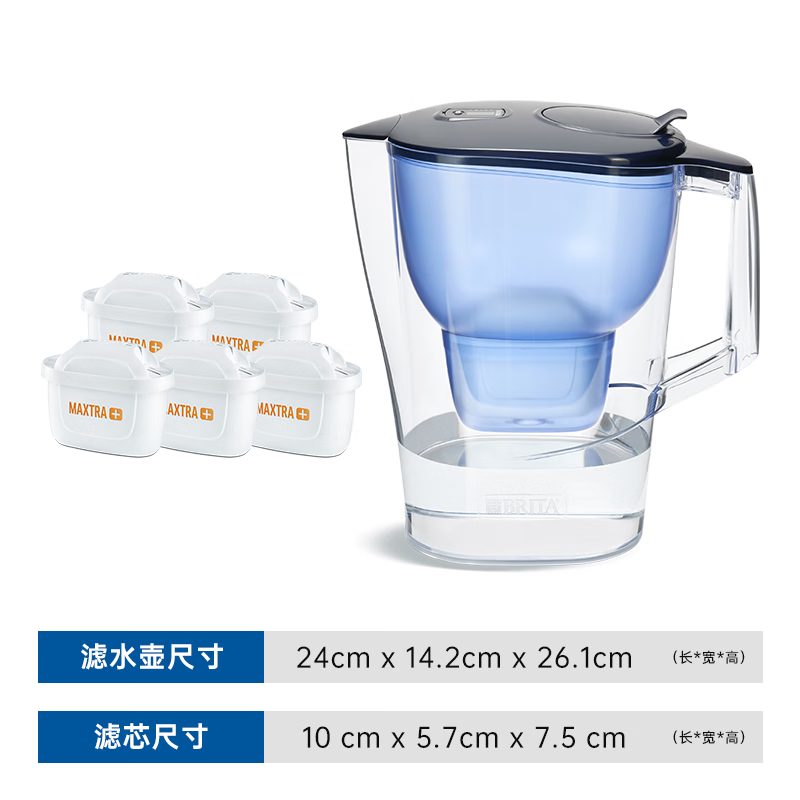 碧然德(BRITA)过滤净水器 家用滤水壶 Kalea 晨汐系列XL 3.5L(蓝)+专家版滤芯5枚 环保加固包装