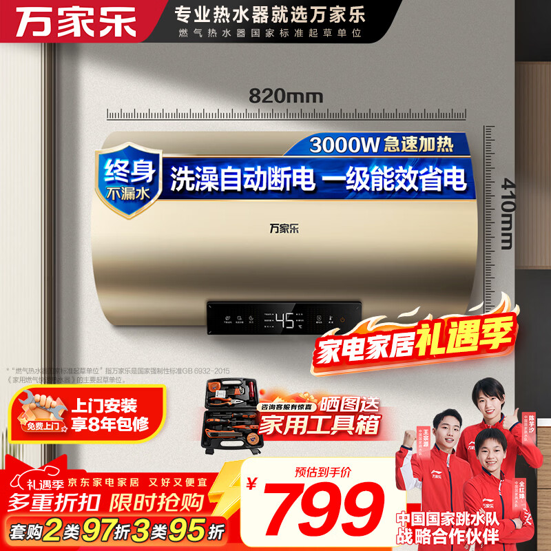 万家乐电热水器【安全大师FW0升级出水断电】60升一级能效3000W速热健康杀菌储水式家用D60-FW0