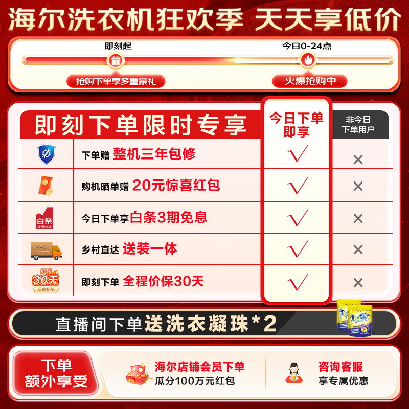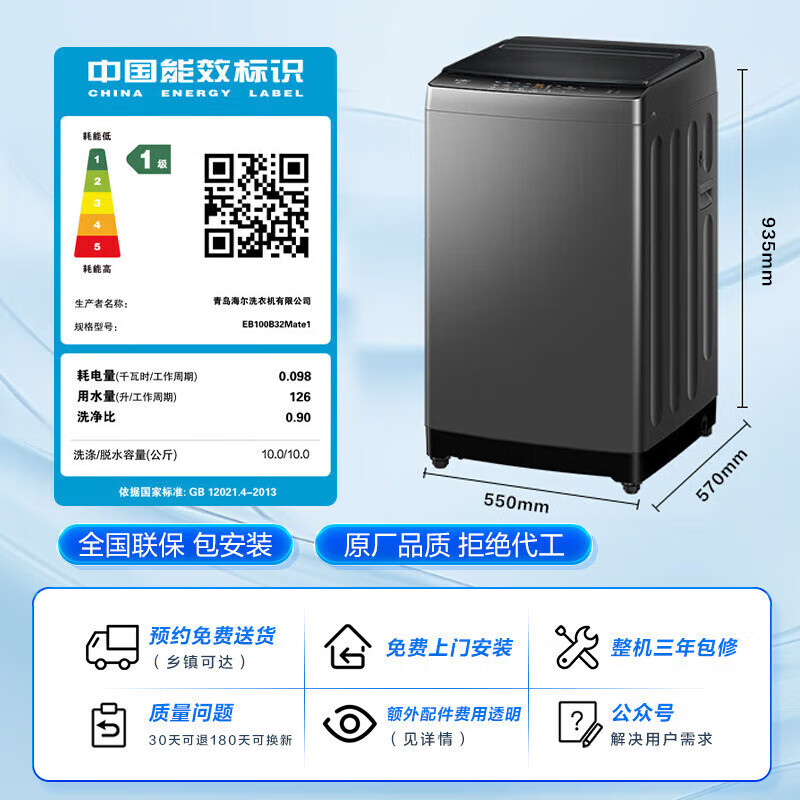 海尔(Haier)波轮洗衣机全自动10公斤大容量 一级能效直驱变频懒人家用出租房宿舍B32Mate1以旧换新国家补贴20% 金榜推荐丨升级抗菌波轮丨智能预约