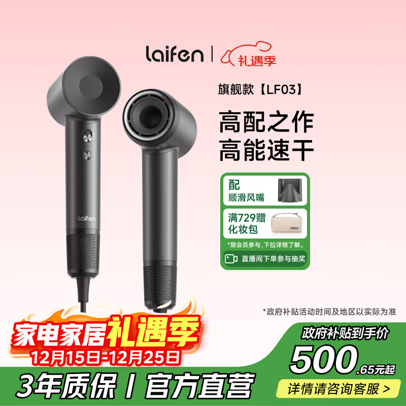 徕芬Laifen高速吹风机 速干家用电吹风 负离子护发吹风筒 圣诞新年礼物送女友 国家补贴 LF03深灰