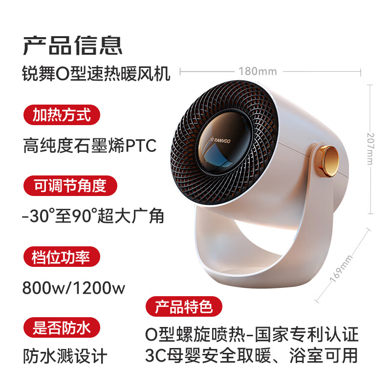 锐舞【速热速暖强省电】暖风机石墨烯取暖器电热电暖器电暖气家用小型婴儿浴室【速热省电母婴款】t