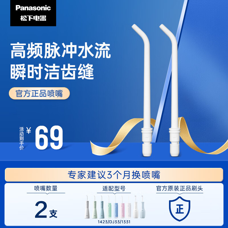 松下(Panasonic)高频脉冲水流喷嘴冲洗残渣 适用于小圆管1331/DJ33 2支装WEW0987W405