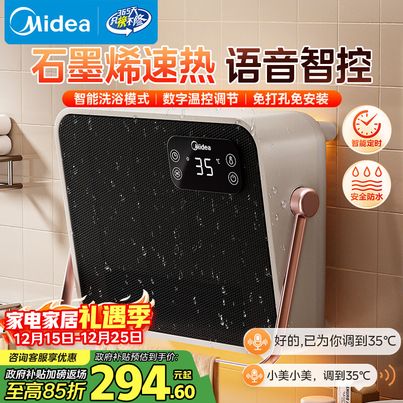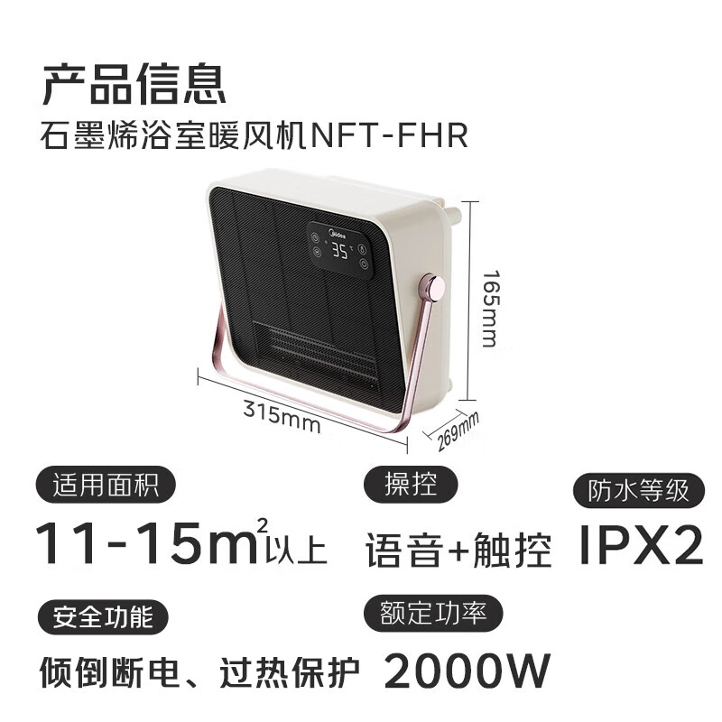 美的(Midea)【语音智控】浴室暖风机/小太阳取暖器/石墨烯速热/家用电暖器电热暖风机台壁两用轻音节能NFT-FHR