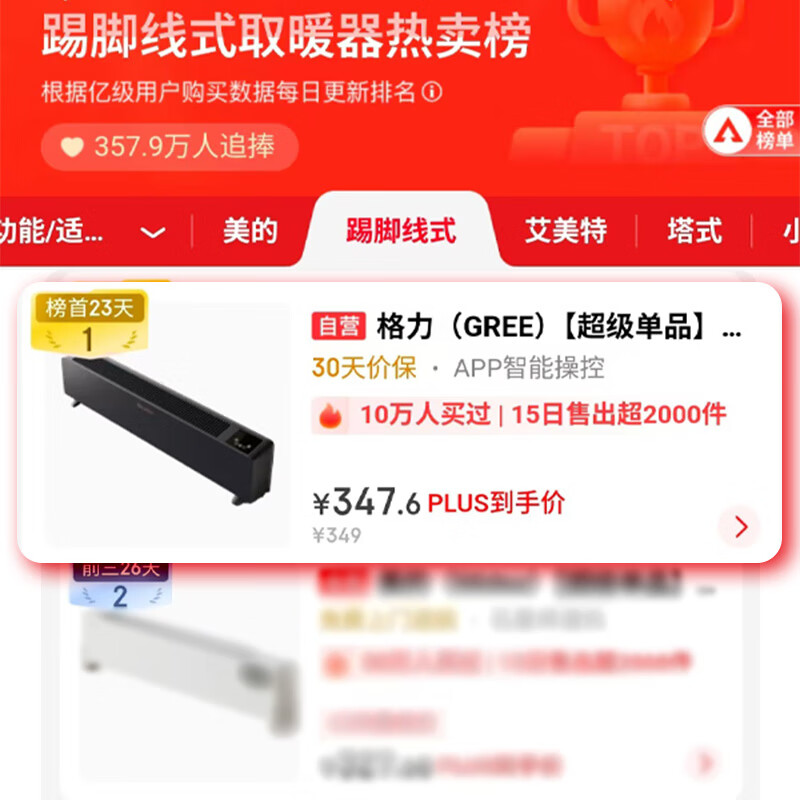 格力(GREE)【超级单品】石墨烯踢脚线取暖器防水电热电暖器电暖气移动地暖节能全屋 NDJC-J6022B