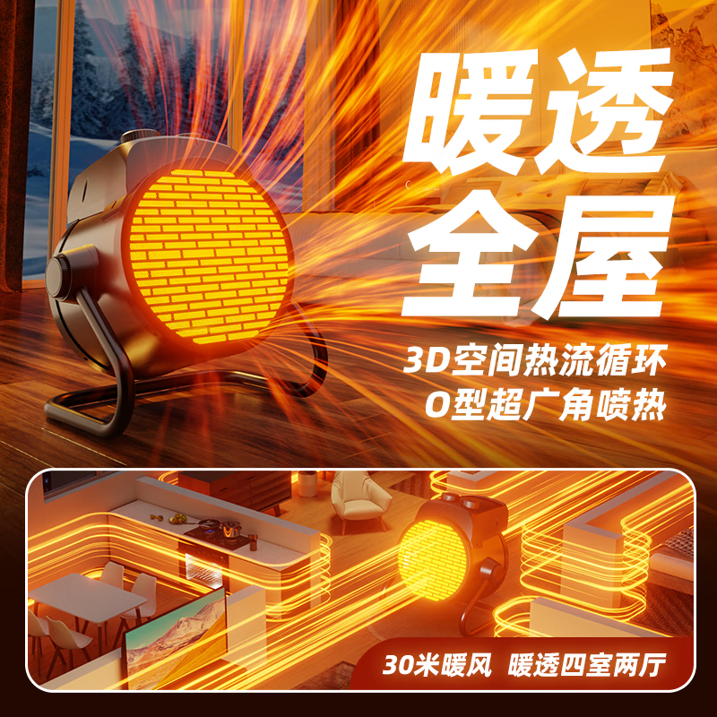 VCJ暖风机工业取暖器家用节能小钢炮大功率热风机速热省电暖器2000W PTC陶瓷发热AK47