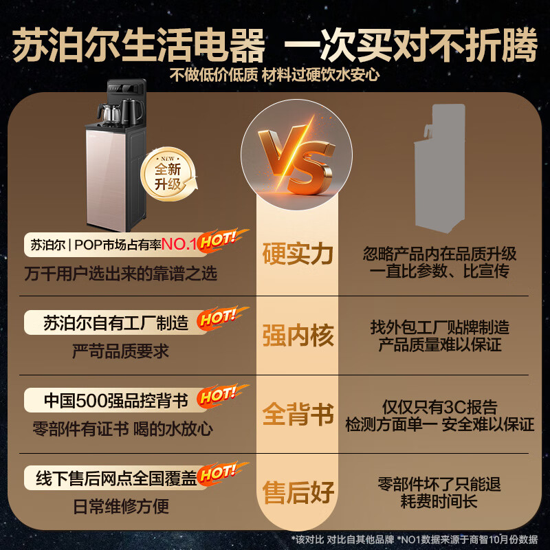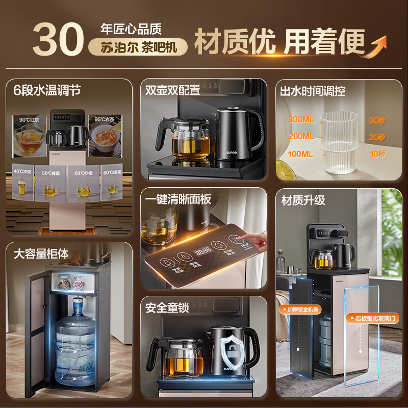 苏泊尔(SUPOR)智能茶吧机家用办公室内高端客厅用新款饮水机下置水桶多功能立式茶吧机烧水壶一体自动上水 【304不锈钢+不含双酚A】 制热型