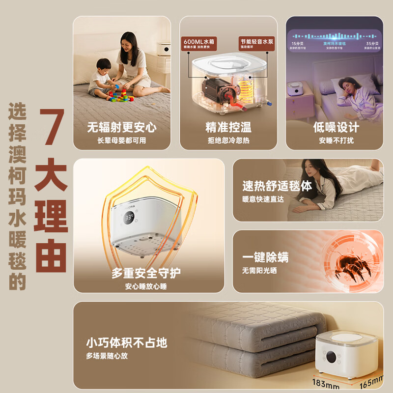 澳柯玛恒温加热水暖毯双人电热毯电褥子家用除螨水热毯水循环水暖炕母婴床垫单人取暖安全2米*1.8米55C