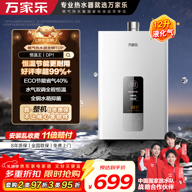 万家乐燃气热水器【恒温王12DP1(F)·液化气】12升国家补贴立减15%精准控温智能变升节能防冻以旧换新