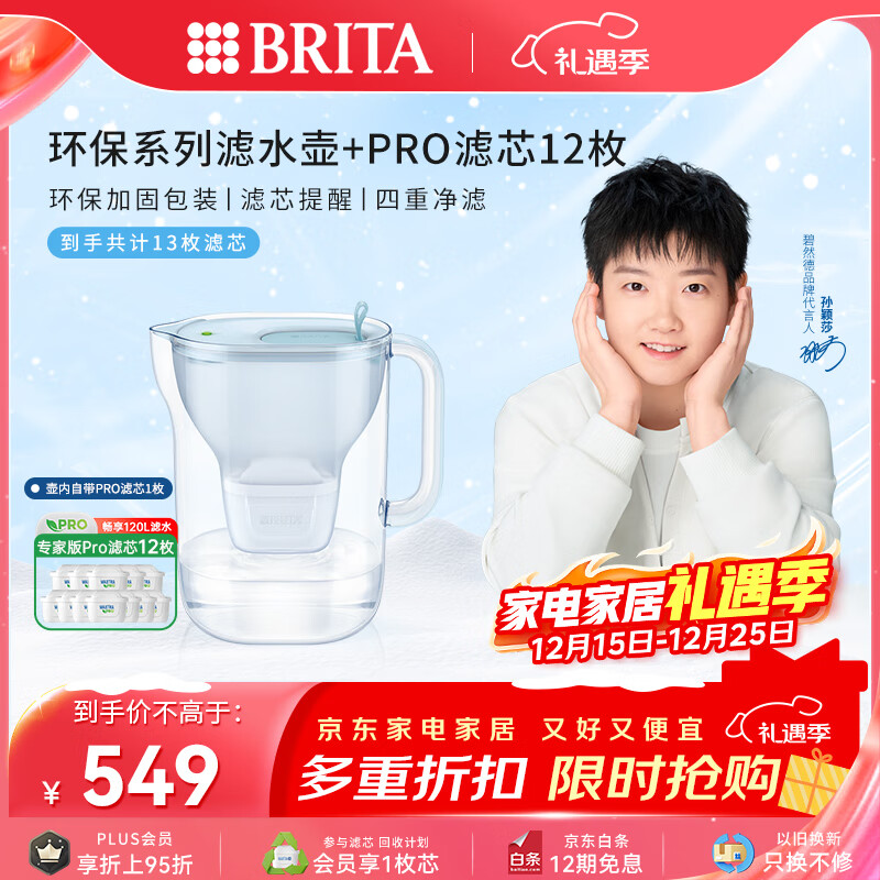 碧然德【新款上市】家用滤水壶 净水壶 Style eco系列 3.5L(冰川蓝)+PRO版滤芯12枚 环保加固包装
