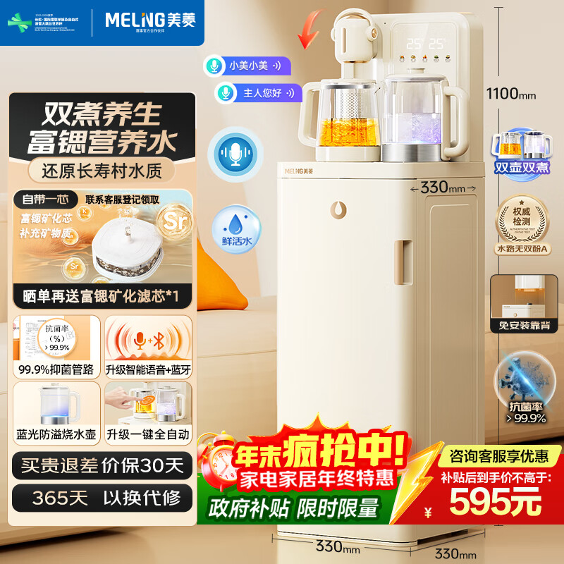 美菱富锶矿化语音茶吧机家用多功能办公室立式饮水机一体柜防溢水防干烧煮茶养生壶双显彩屏MC-N25