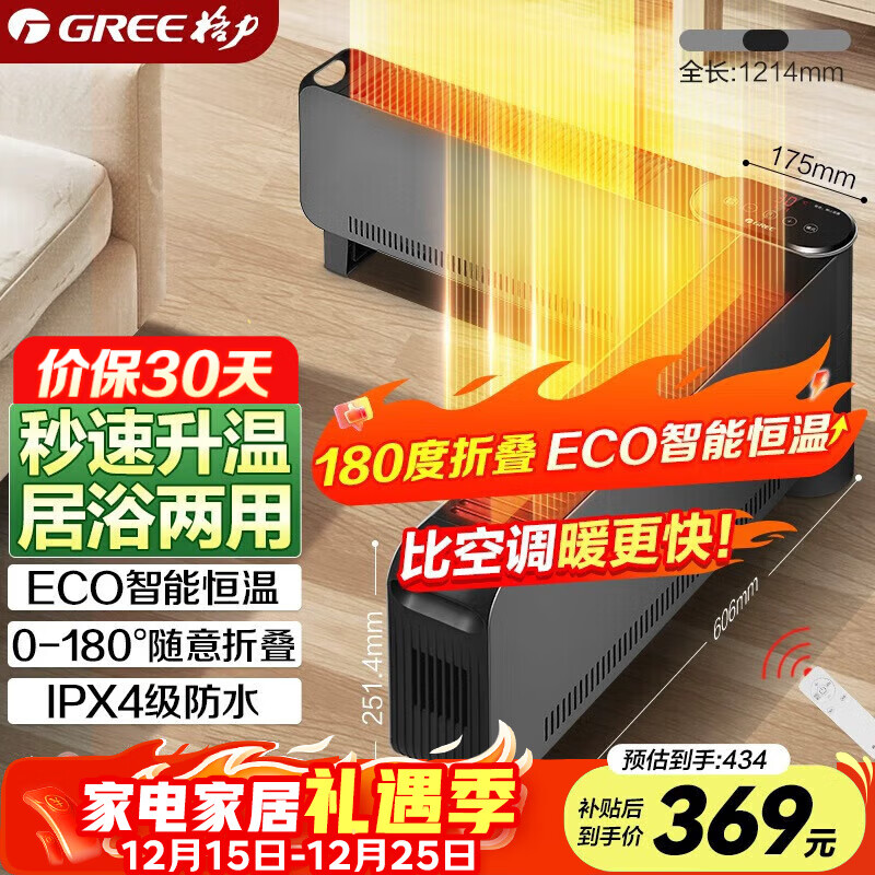 格力(GREE)【金榜单品】折叠踢脚线取暖器家用速热电暖器遥控电暖气片防水移动地暖干衣暖风机NJE-X6020B