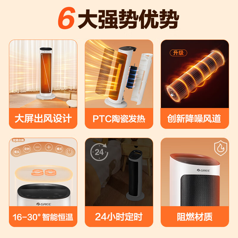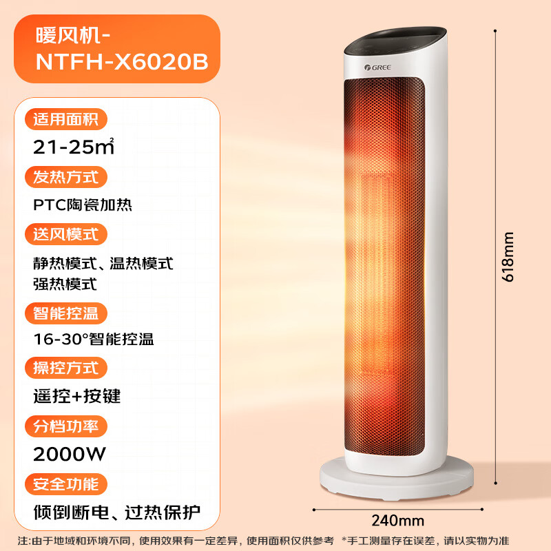 格力(GREE)取暖器家用暖风机遥控电暖器立式摇头电暖气数码显示屏取暖气小太阳电暖风加热风机NTFH-X6020B