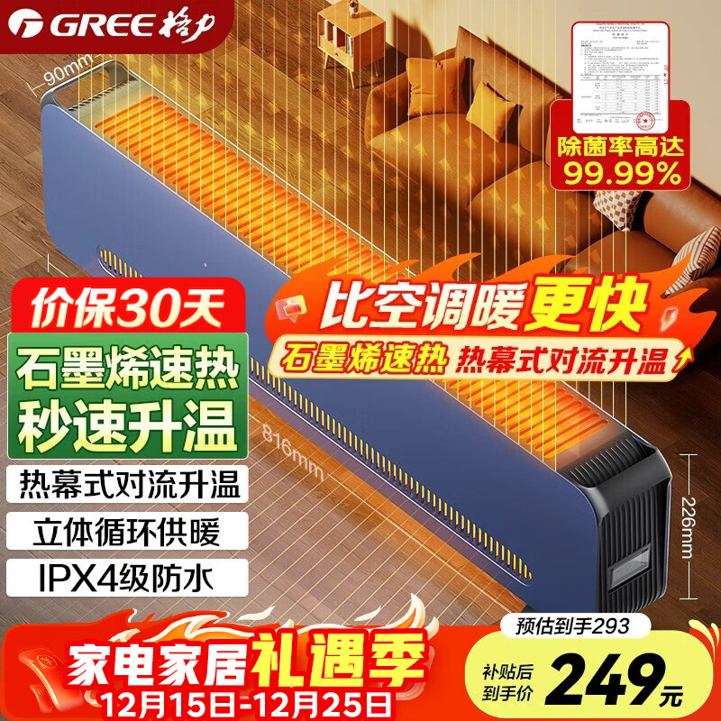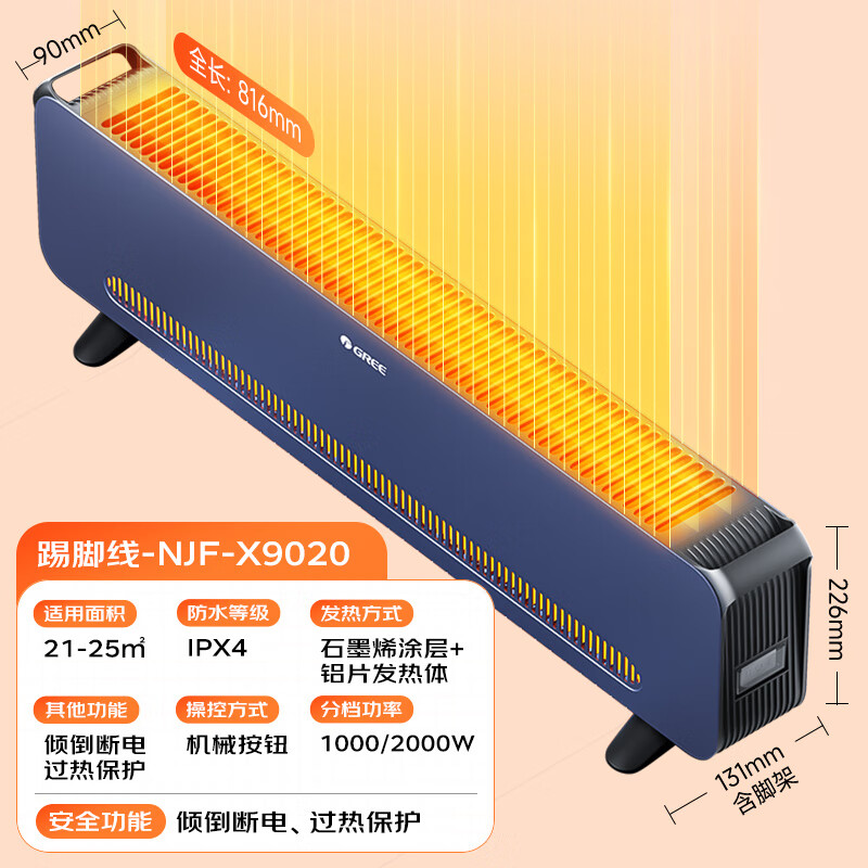 格力(GREE)【金榜单品】石墨烯取暖器家用电暖器速热电暖气片IPX4级防水取暖气浴室干衣暖风机NJF-X9020