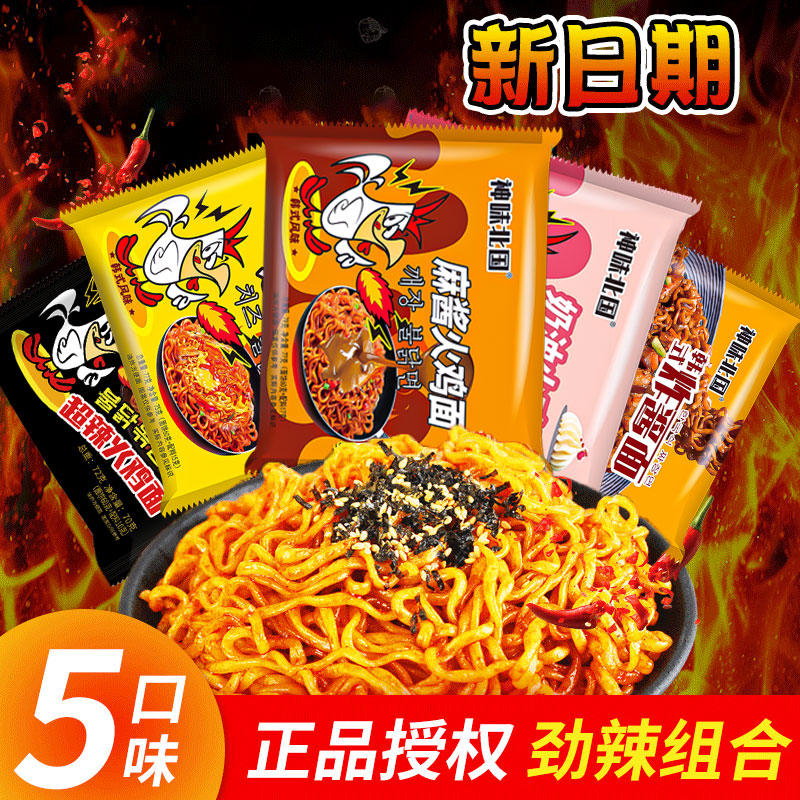 火鸡面混合口味泡面蟹黄76g芝士火鸡拌面整箱袋装方便面零食 5袋装【五种口味拌面】全家福