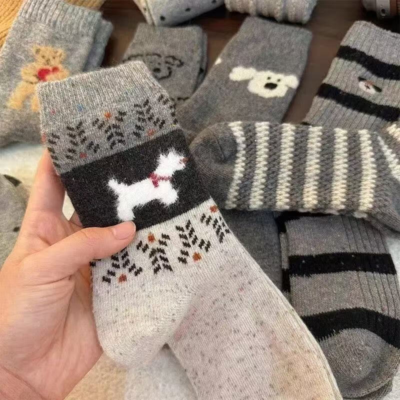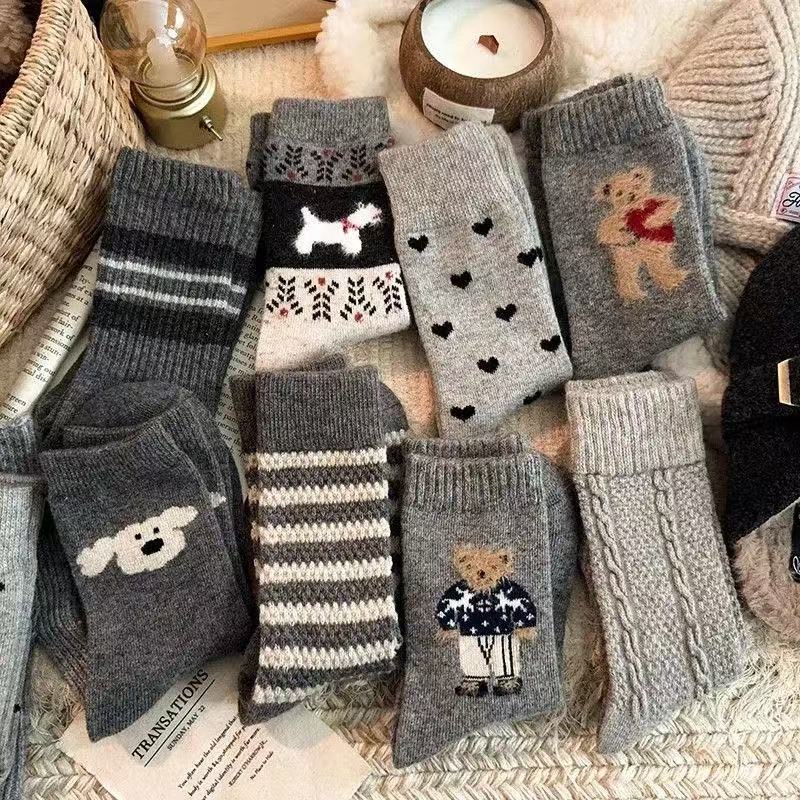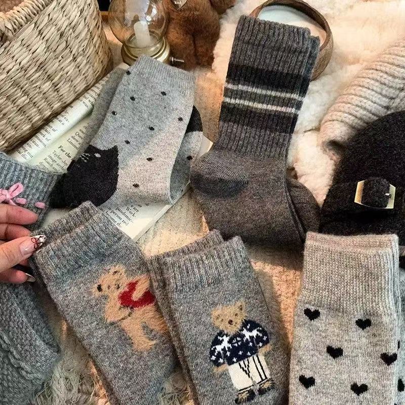 学生百搭春秋款小熊袜子女中筒卡通可爱复古保暖可爱长袜冬天 八色随机发 1双 均码