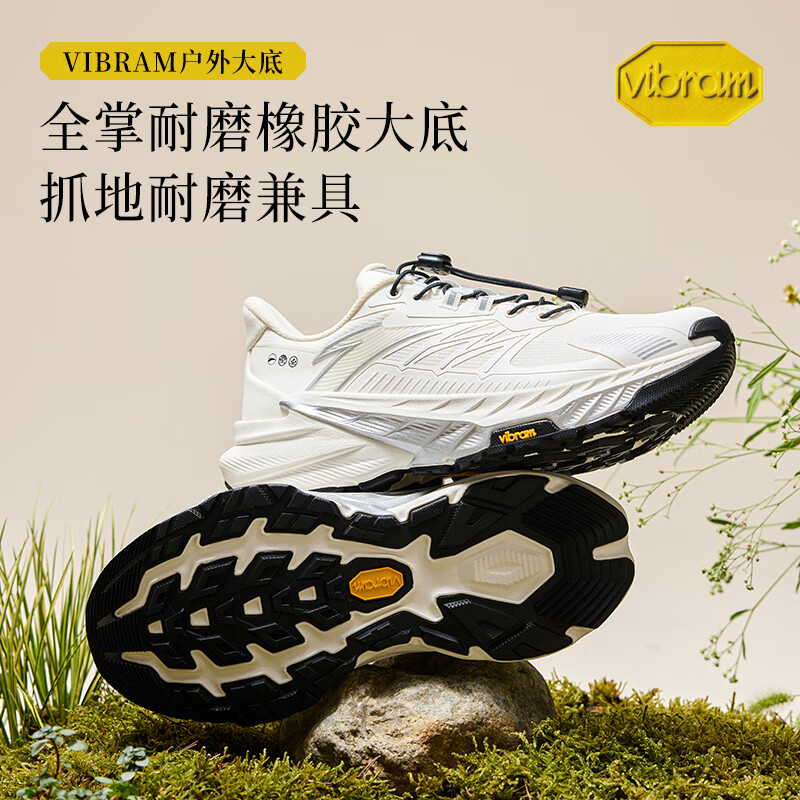 安踏探野2代丨VIBRAM大底户外防泼水越野跑鞋男女耐磨抓地徒步运动鞋 【经典男款-新配色】象牙白/银-1 9.5 (男43)