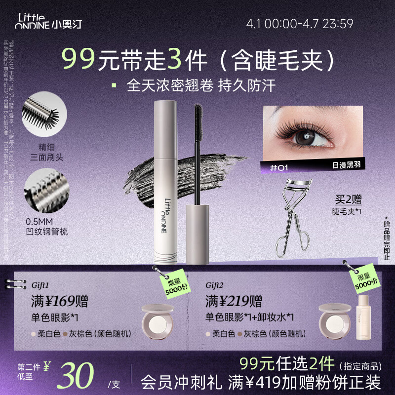小奥汀(littleondine)黑扇睫毛膏01日漫黑羽5g自然卷翘纤长打底定型防水防汗不晕染浓密