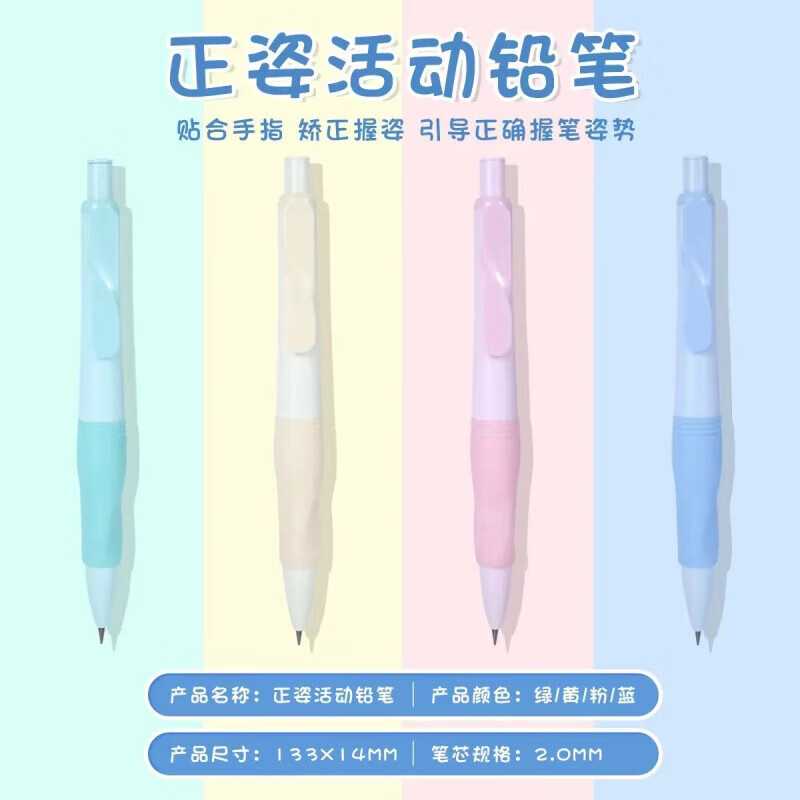 新款2.0正姿活动铅笔海豚握杆小学生用矫姿加粗铅芯自动铅笔 粉色1支+1盒笔芯(8支笔芯)