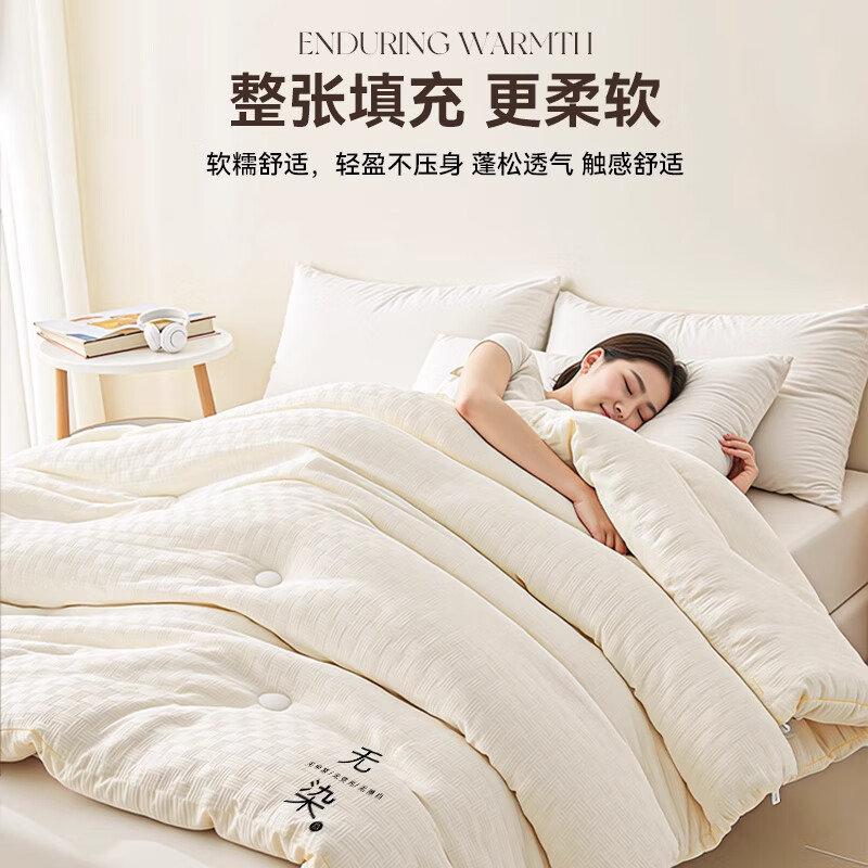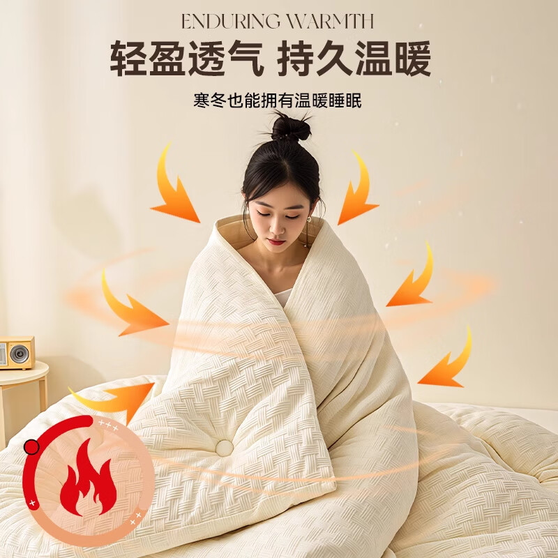浪莎大豆被子秋冬季冬天被子1.5米x2米单人加厚冬被6-8斤棉被被芯被褥 华夫格无染-米白 150*200米-约8斤【加厚冬被】