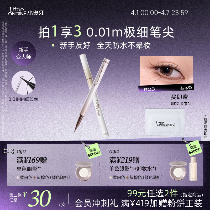 小奥汀(littleondine)极细眼线液笔03枯木茶0.5g极细眼线胶笔液笔持久防水防汗不易晕染