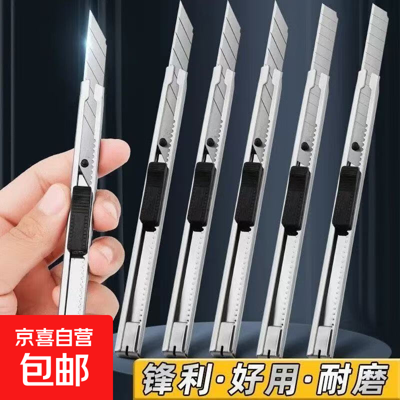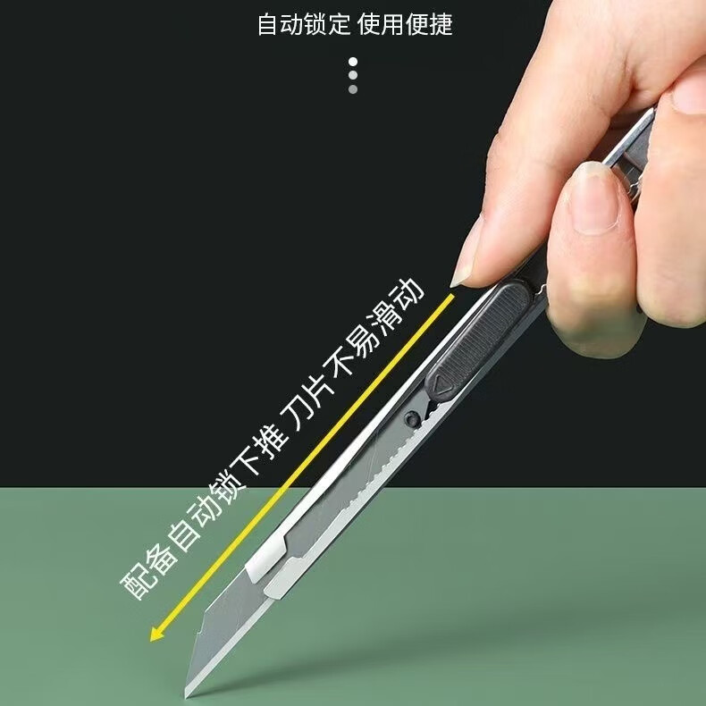 银色长柄美工刀不锈钢美工刀小号便携办公用品金属裁纸刀学生文具手工具刀 1把【银色刀尖头】