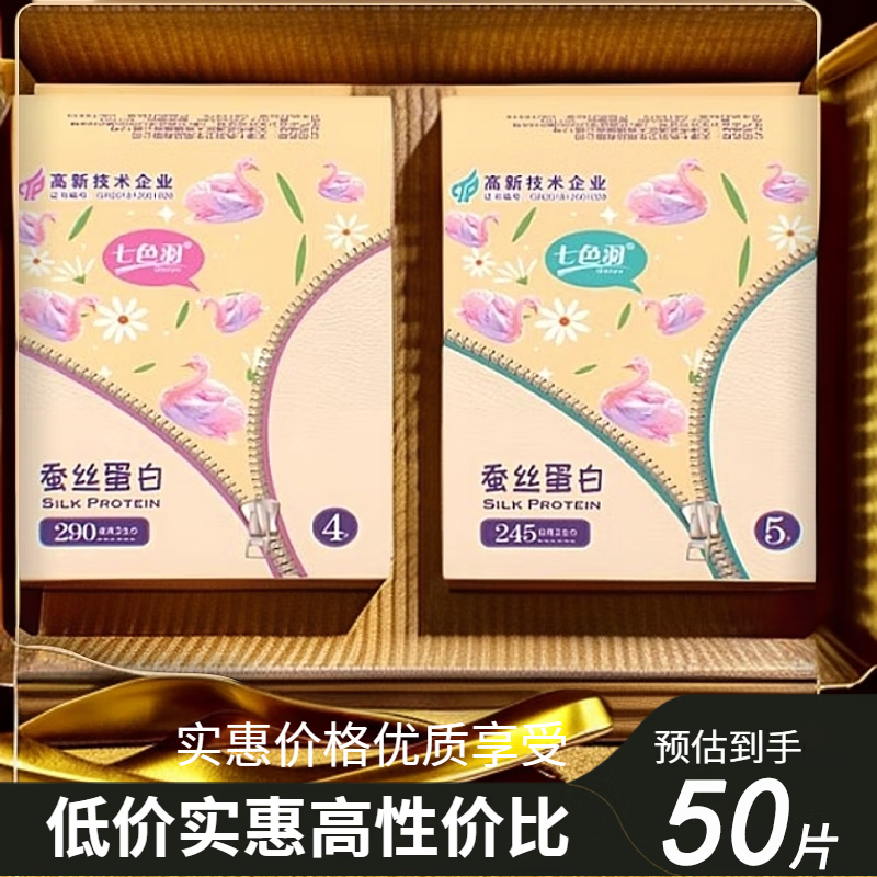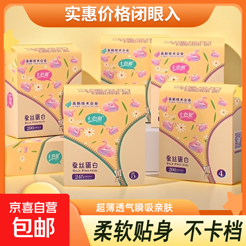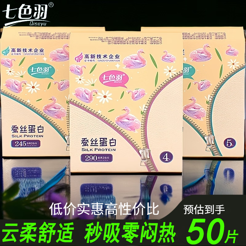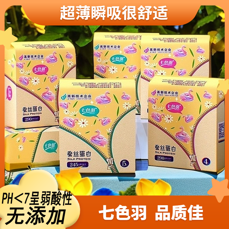 七色羽卫生巾日用夜用组合装棉柔亲肤姨妈巾学生防漏整箱超薄透气 蚕丝 245mm 5片 1包