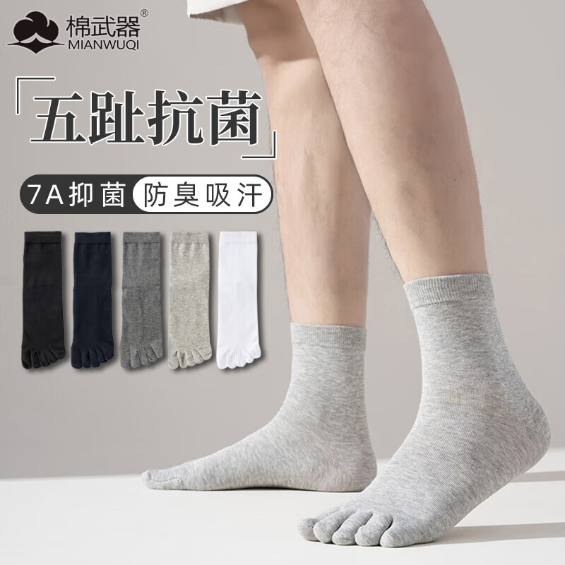 棉武器男士四季五指袜7a级抗菌男款防臭分脚趾5指头中筒袜子