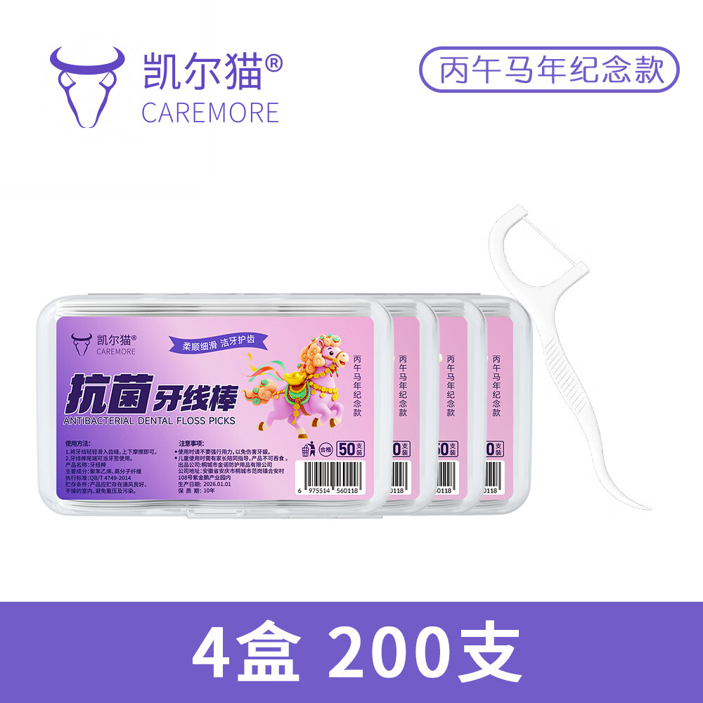 【蛇年限定包装】盒装牙线超细家庭装牙线棒随身便携剔牙签线 【2026纪念款】马年限定款4盒200只