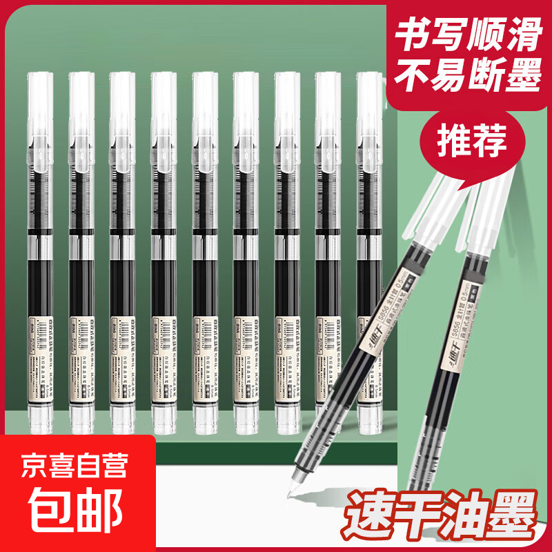 速干直液式走珠笔中性笔黑笔红笔黑色水笔全针管水性直液笔大容量学生专用刷题 黑色5支装