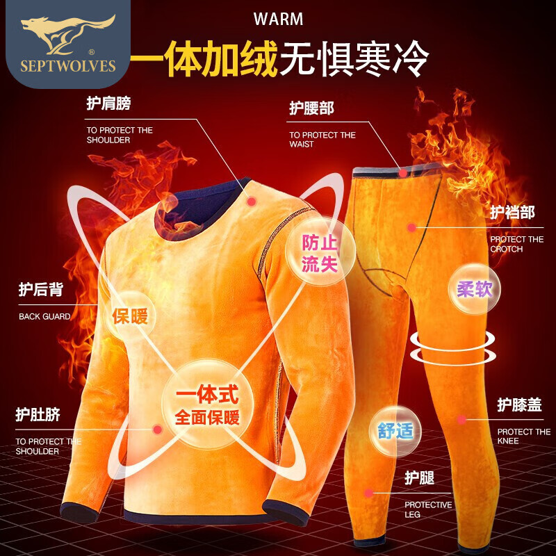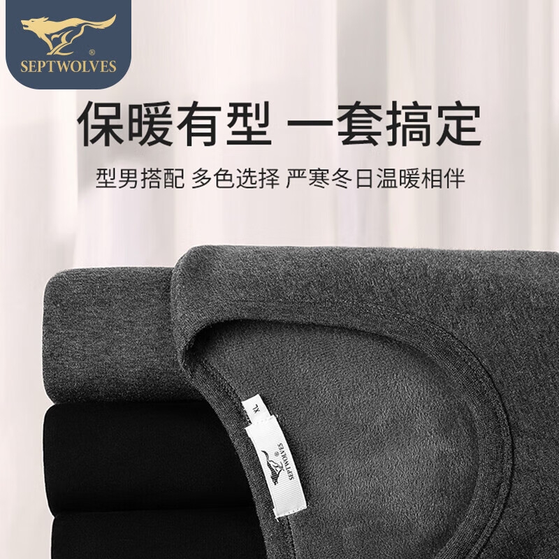 七匹狼(SEPTWOLVES)【加倍暖】保暖内衣男加绒加厚秋衣秋裤男冬季圆领内衣套装