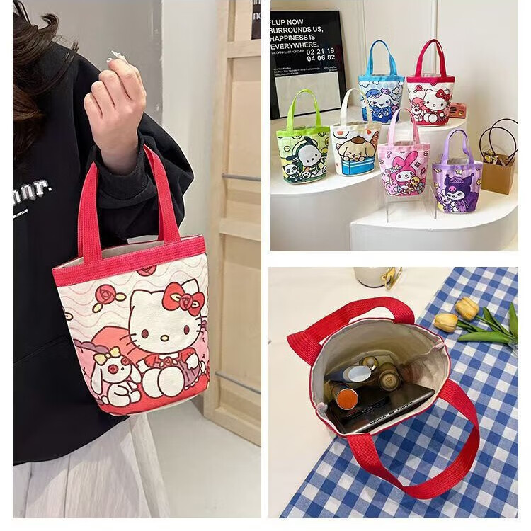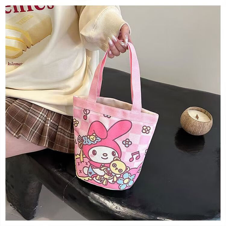 水桶帆布包手提包收纳包学生便携上班便当包收纳袋礼品袋手提袋 美乐蒂水桶包1个装