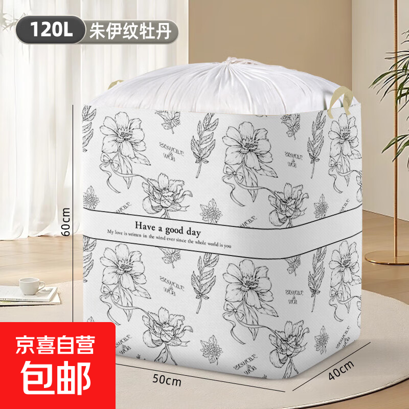 可折叠新款手提式搬家棉被袋大容量加固提手整理打包袋居家专用袋 【朱伊纹牡丹】特大120L